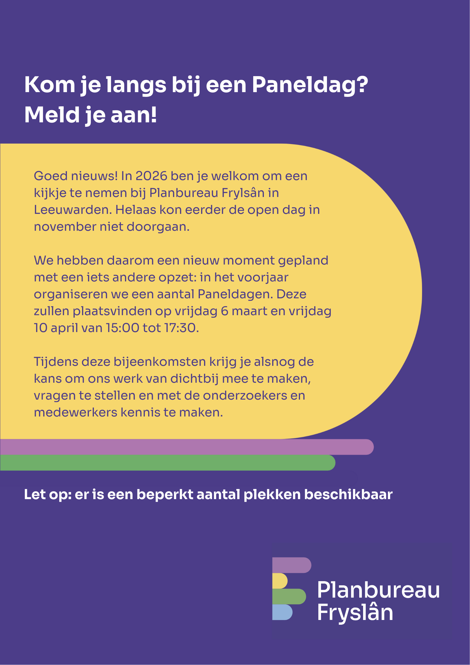 Wil je graag bij een Paneldag aanwezig zijn? Geef je dan hieronder op voor 1 van de opties. Beide dagen zullen plaatsvinden op een vrijdagmiddag, aan de Prins Hendrikstraat 8 in Leeuwarden van 15:00 tot 17:30. Heb je je eerder al aangemeld? Dan hoef je je niet opnieuw in te schrijven. Je ontvangt vanzelf meer informatie per mail.
