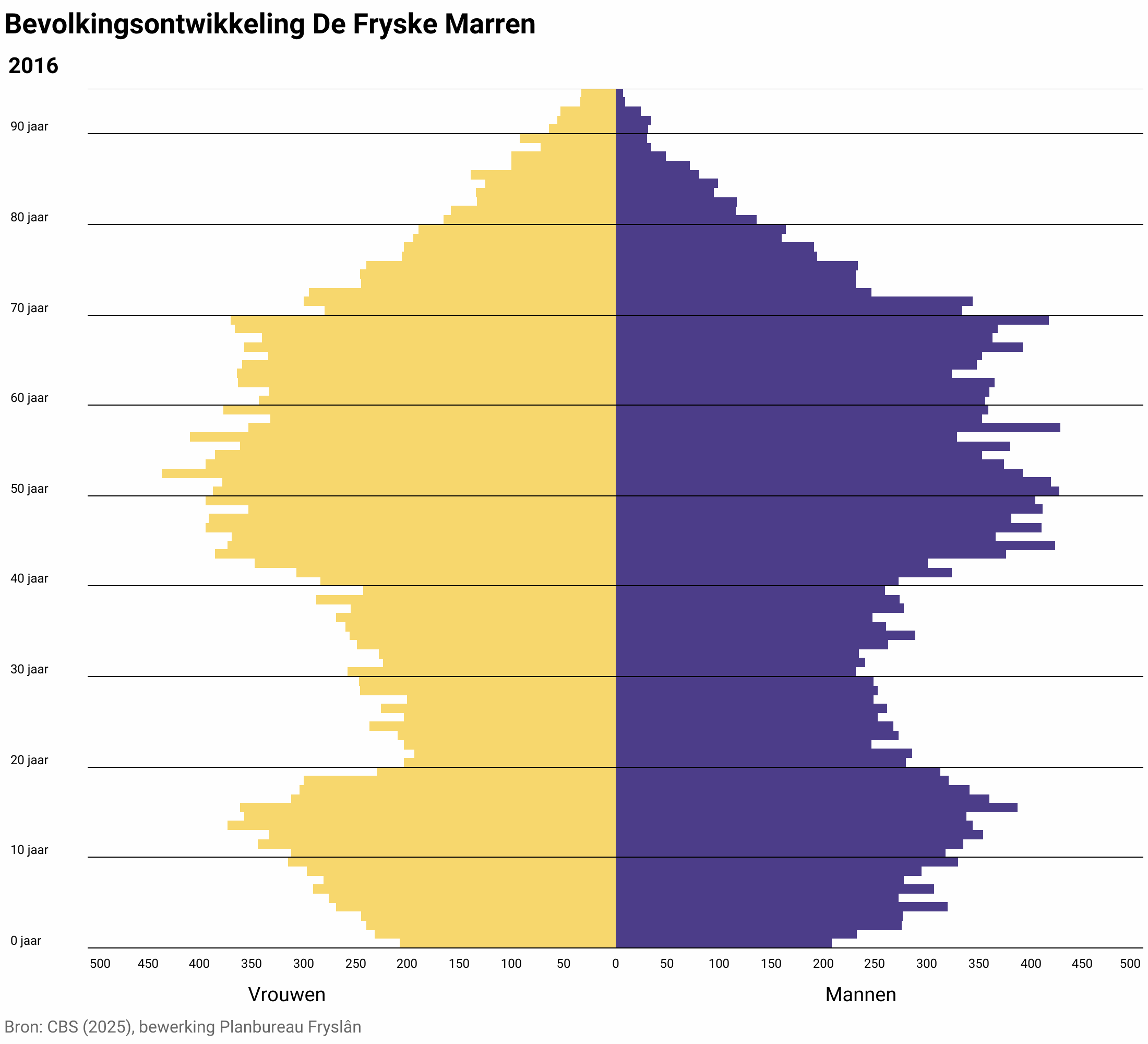 De gemeente De Fryske Marren heeft net als de rest van Fryslân steeds meer te maken met vergrijzing. Zo is de verwachting dat er in 2040 meer dan 3400 65-plussers meer zijn dan in 2025 (Provincie Fryslân, 2024). Dat is een toename van 26 procent. Op dit moment is 26 procent van de inwoners van De Fryske Marren 65 jaar of ouder. Daarmee is de vergrijzing in De Fryske Marren sterker dan elders in Fryslân. Verder neemt de levensverwachting toe, waardoor het aantal mensen boven de 75 jaar toeneemt. Dit wordt ook wel dubbele vergrijzing genoemd (CBS, 2025d).