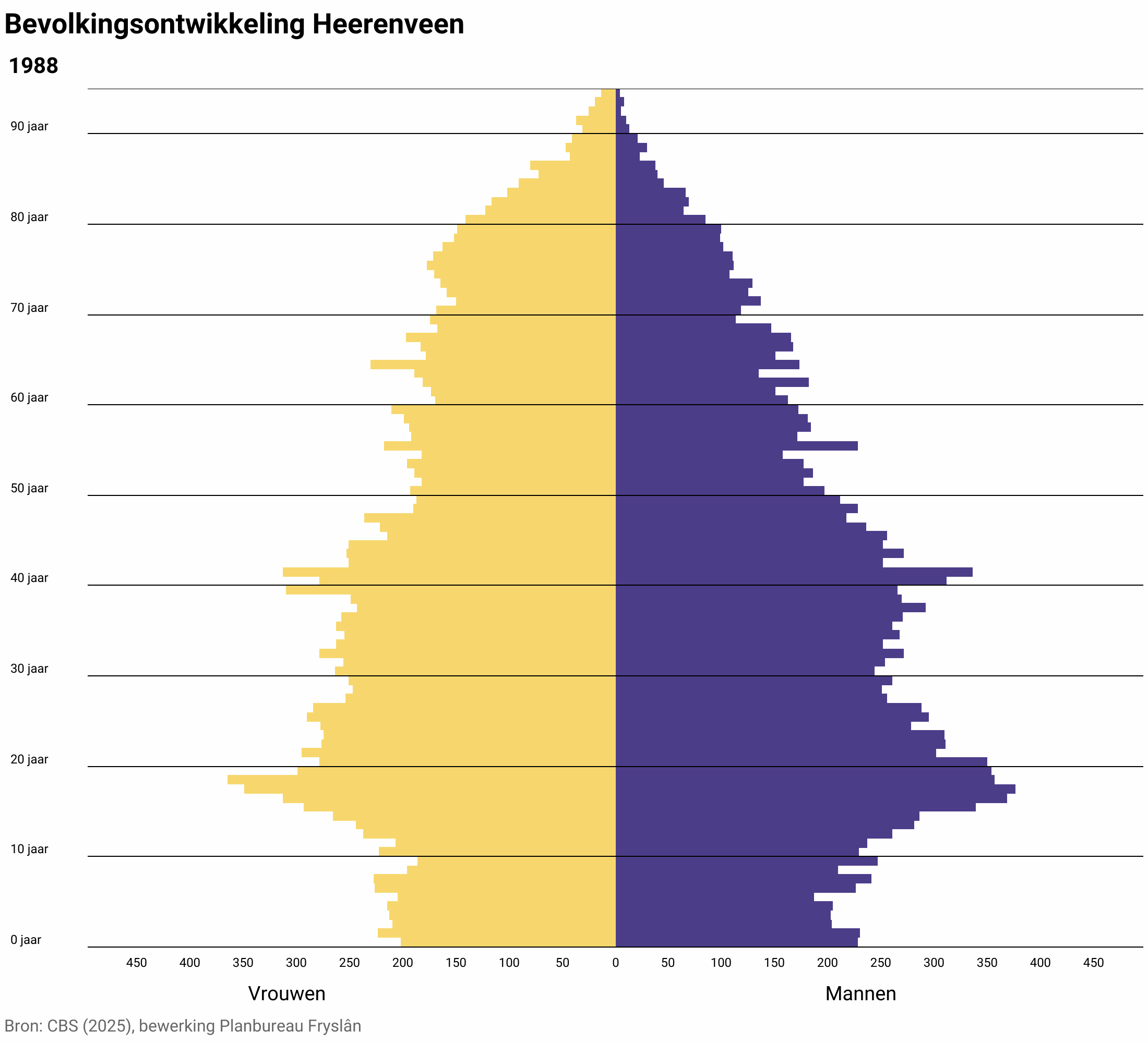 Heerenveen heeft net als de rest van Fryslân steeds meer te maken met vergrijzing. Zo is de verwachting dat er in 2040 ruim 3400 meer 65-plussers zijn dan in 2025. Op dit moment is 24 procent van de inwoners van Heerenveen 65 jaar of ouder. Daarmee is de vergrijzing op hetzelfde niveau als in de rest van Fryslân. Verder neemt de levensverwachting toe, waardoor het aantal mensen boven de 75 jaar toeneemt. Dit wordt ook wel dubbele vergrijzing genoemd (CBS, 2025).