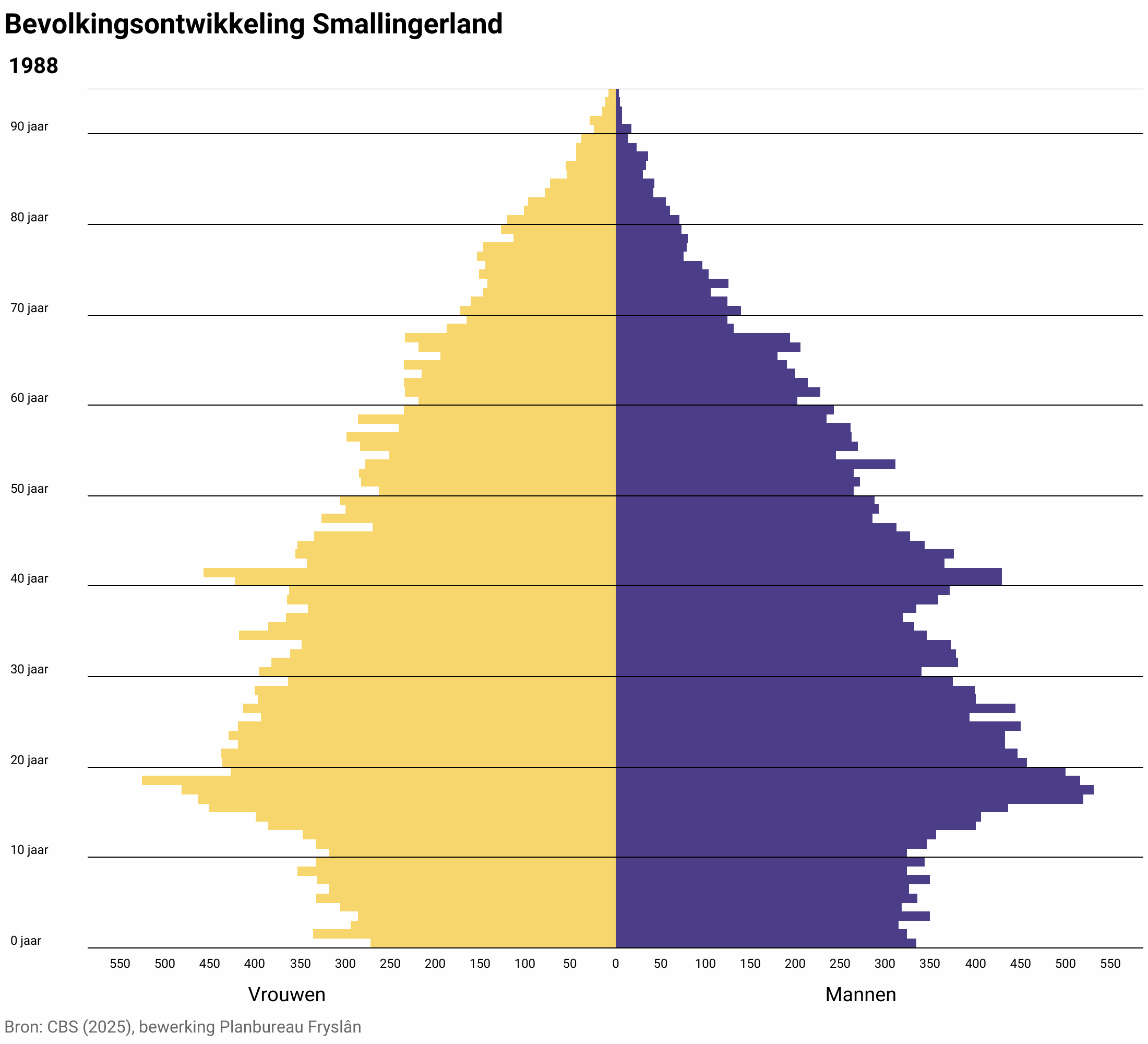 Smallingerland heeft net als de rest van Fryslân steeds meer te maken met vergrijzing. Zo is de verwachting dat er in 2040 bijna 2700 meer 65-plussers zijn dan in 2025. Op dit moment is 23 procent van de inwoners van Smallingerland 65 jaar of ouder. Daarmee is de vergrijzing in Smallingerland net zo sterk als in Fryslân als geheel. Verder neemt de levensverwachting toe, waardoor het aantal mensen boven de 75 jaar toeneemt. Dit wordt ook wel dubbele vergrijzing genoemd (CBS, 2025).