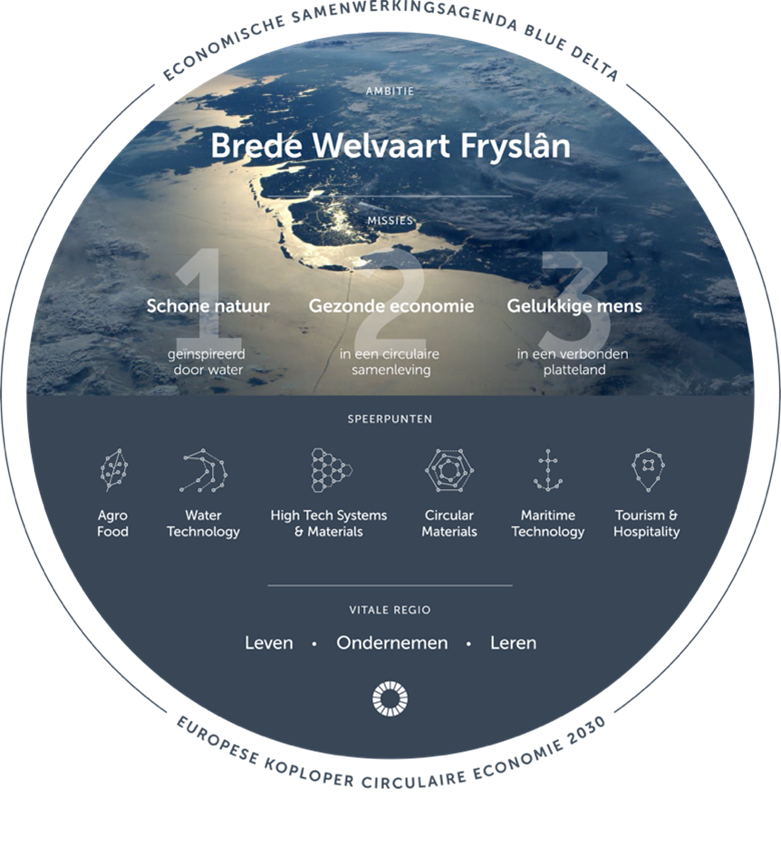 De economie speelt een belangrijke rol in de brede welvaart. De Economische Samenwerkingsagenda Blue Delta richt zich op de stuwende economische sectoren waarin Fryslân zich onderscheidt en waarvan het verdienvermogen sterk is. Dat zijn: AgroFood, Water Technology, High Tech Systems & Materials, Circular Materials, Maritime Technology en Tourism & Hospitality.