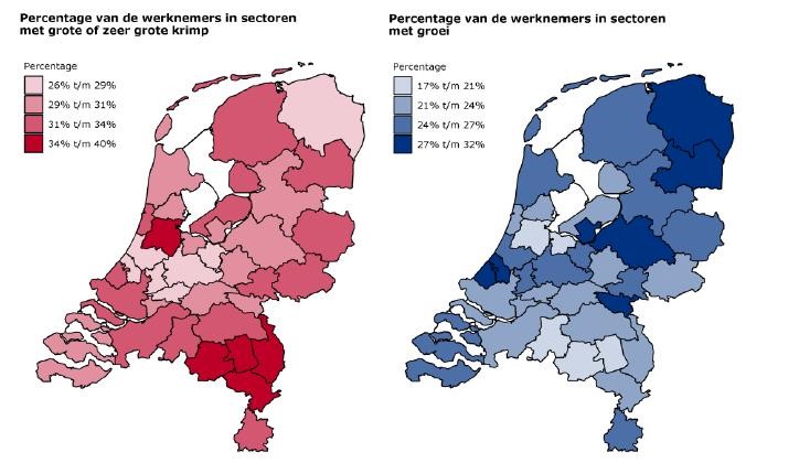 Per regio verwacht het UWV grote verschillen voor de werkgelegenheid. Als er in een regio veel mensen werken in een sector die sterk krimpt, heeft dat grote gevolgen voor de werkgelegenheid in die regio.