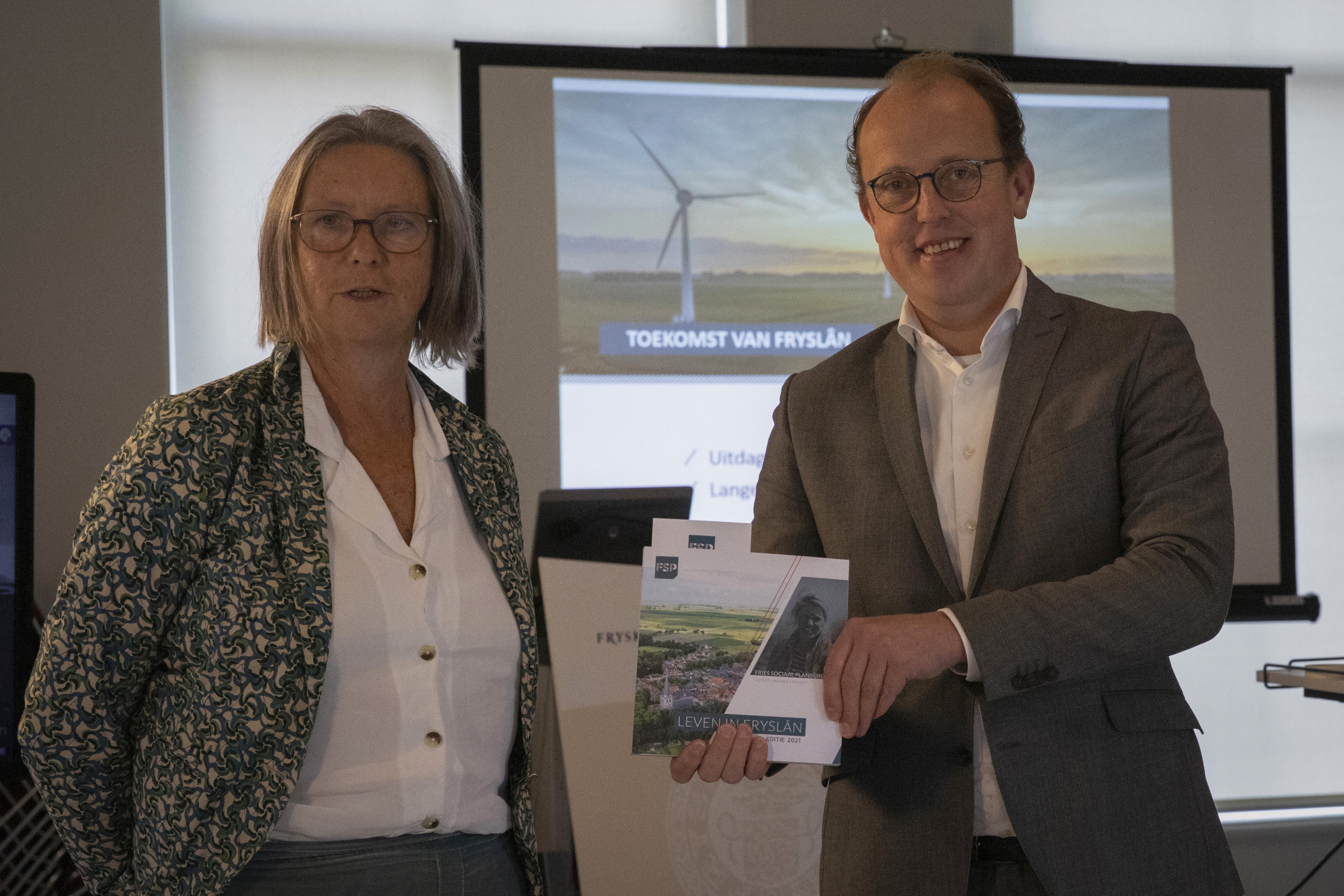 Ingrid van de Vegte overhandigde op 12 november de tweejaarlijkse publicatie ‘Leven in Fryslân’ aan Gedeputeerde Friso Douwstra van de Provincie Fryslân.
