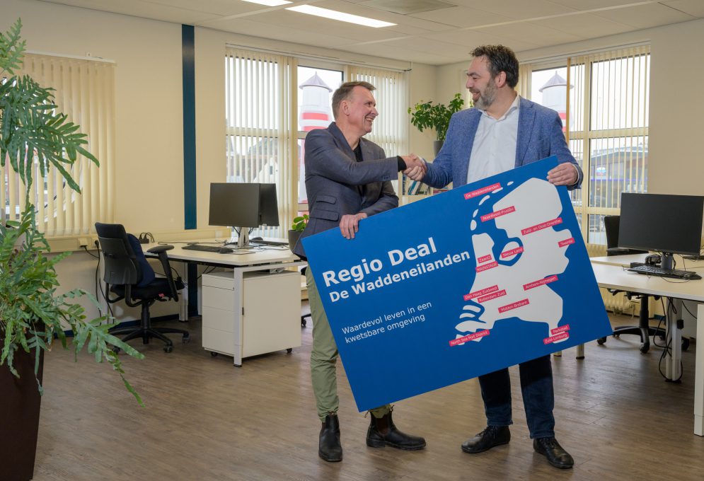 Vandaag hebben burgemeester van Vlieland Michiel Schrier (namens Samenwerkingsverband De Waddeneilanden) en directeur-bestuurder Arjen Droog een overeenkomst getekend. Hierin is vastgelegd dat Planbureau Fryslân de komende jaren Regio Deal de Waddeneilanden lerend gaat evalueren.
