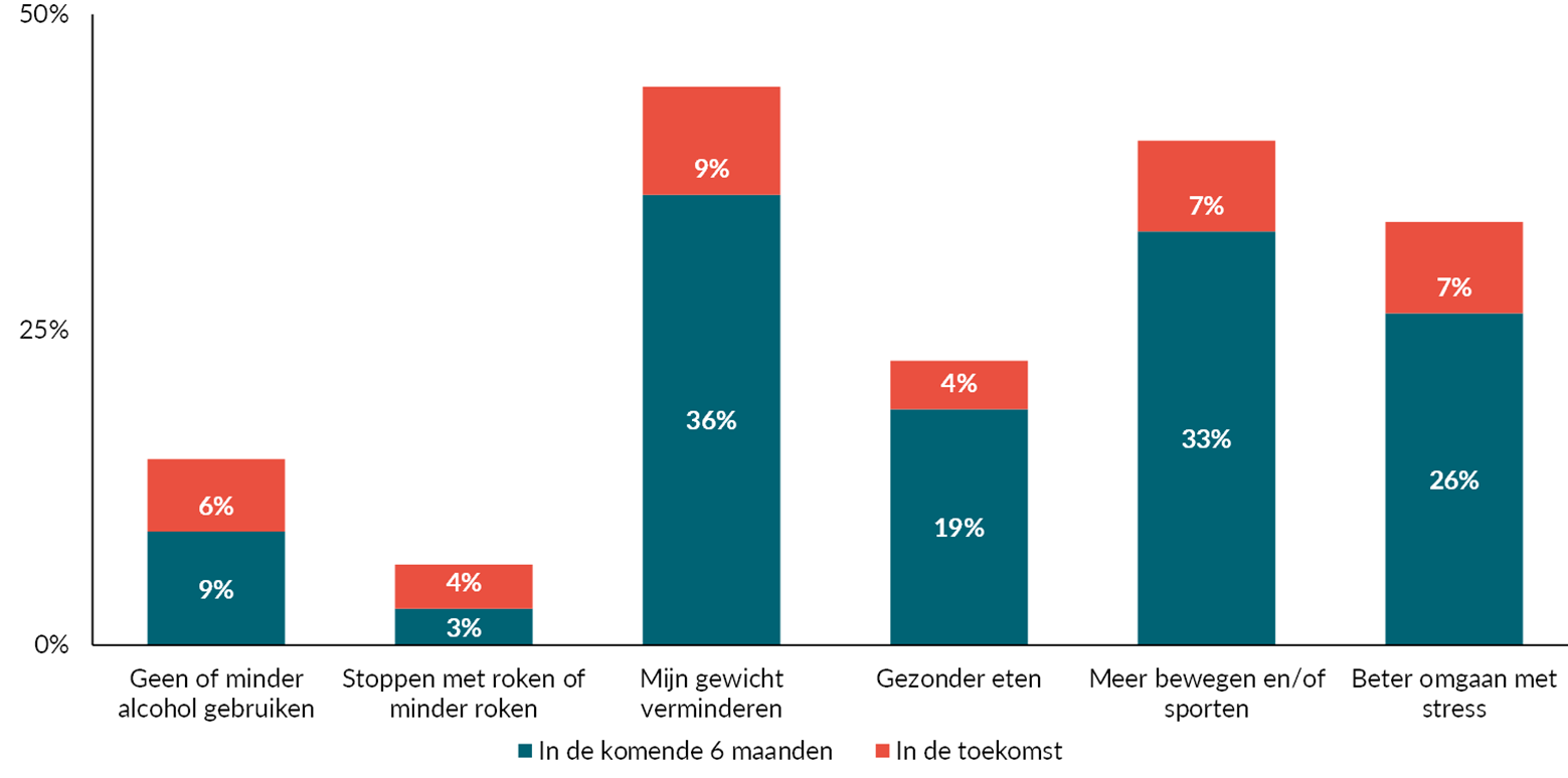 Het is belangrijk om een goed beeld te hebben van de gezondheid status van de inwoners, maar dit betekent niet dat zij ook direct hun gezondheid willen verbeteren. In Fryslân hebben de meeste inwoners gezondheidsdoelen. Dit zijn successen die mensen willen halen om hun gezondheid te verbeteren. Bij de uitvraag is er een onderscheid gemaakt tussen doelen die beoogd zijn om de komende 6 maanden te behalen en doelen voor later. Onder de gehele bevolking zijn de doelen ‘mijn gewicht verminderen’ (45%), ‘meer bewegen en/of sporten’ (40%) en ‘beter omgaan met stress’ (33%) het grootst.