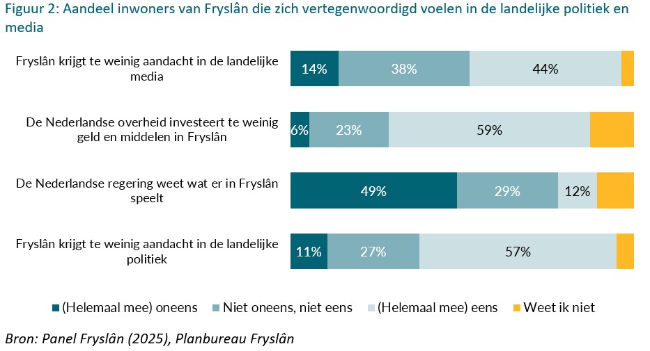 Terwijl het vertrouwen in de regering en Tweede Kamer fors is gedaald in 2025, blijft het vertrouwen in de gemeentelijke overheid stabiel. Een meerderheid van de Friezen vindt dat de landelijke overheid te weinig investeert in Fryslân en dat de regio onvoldoende aandacht krijgt in politiek Den Haag en de landelijke media.